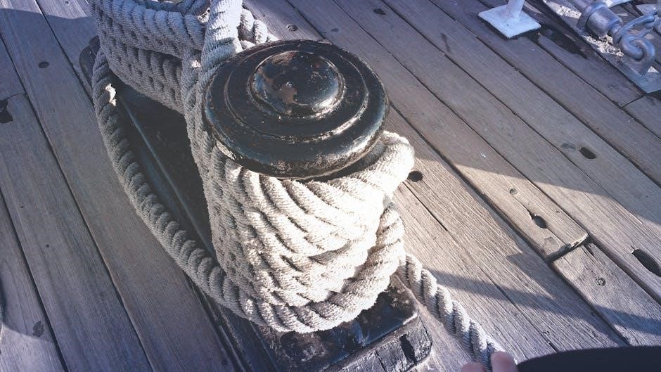A PDF guide will typically illustrate the bowline’s construction with clear, step-by-step diagrams, emphasizing the “rabbit comes out of the hole, goes around the tree, and back down the hole” mnemonic.